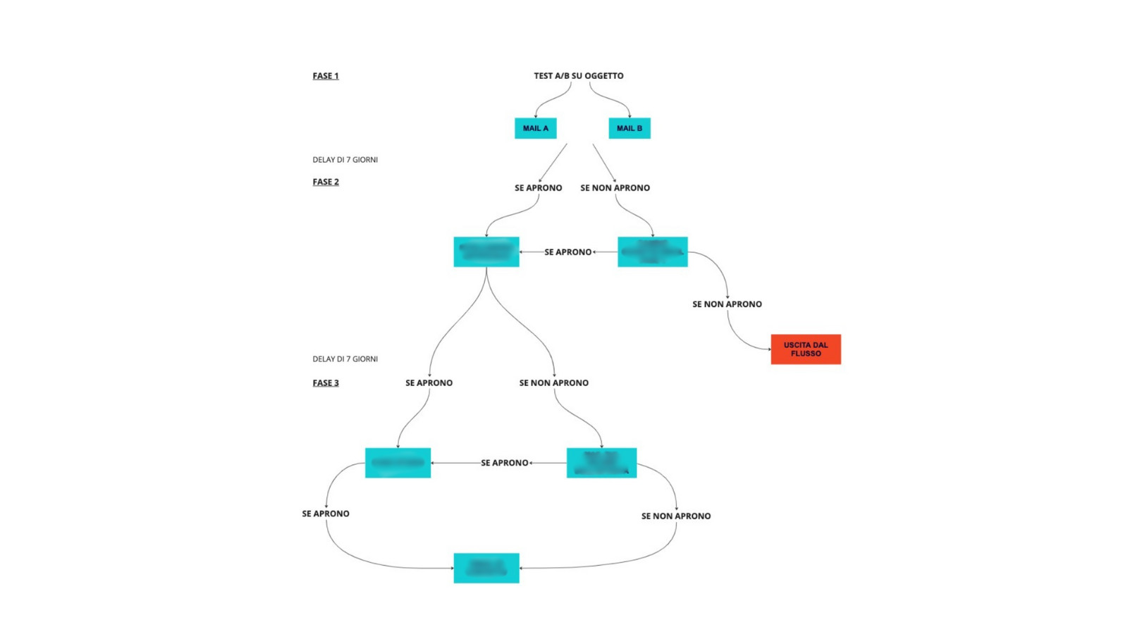 Il secondo step è la creazione del workflow, ovvero una serie di email automatiche che vengono inviate sulla base di specifici trigger o condizioni. Per esempio, un’email di benvenuto che viene spedita in maniera automatizzata quando qualcuno si iscrive alla tua newsletter.